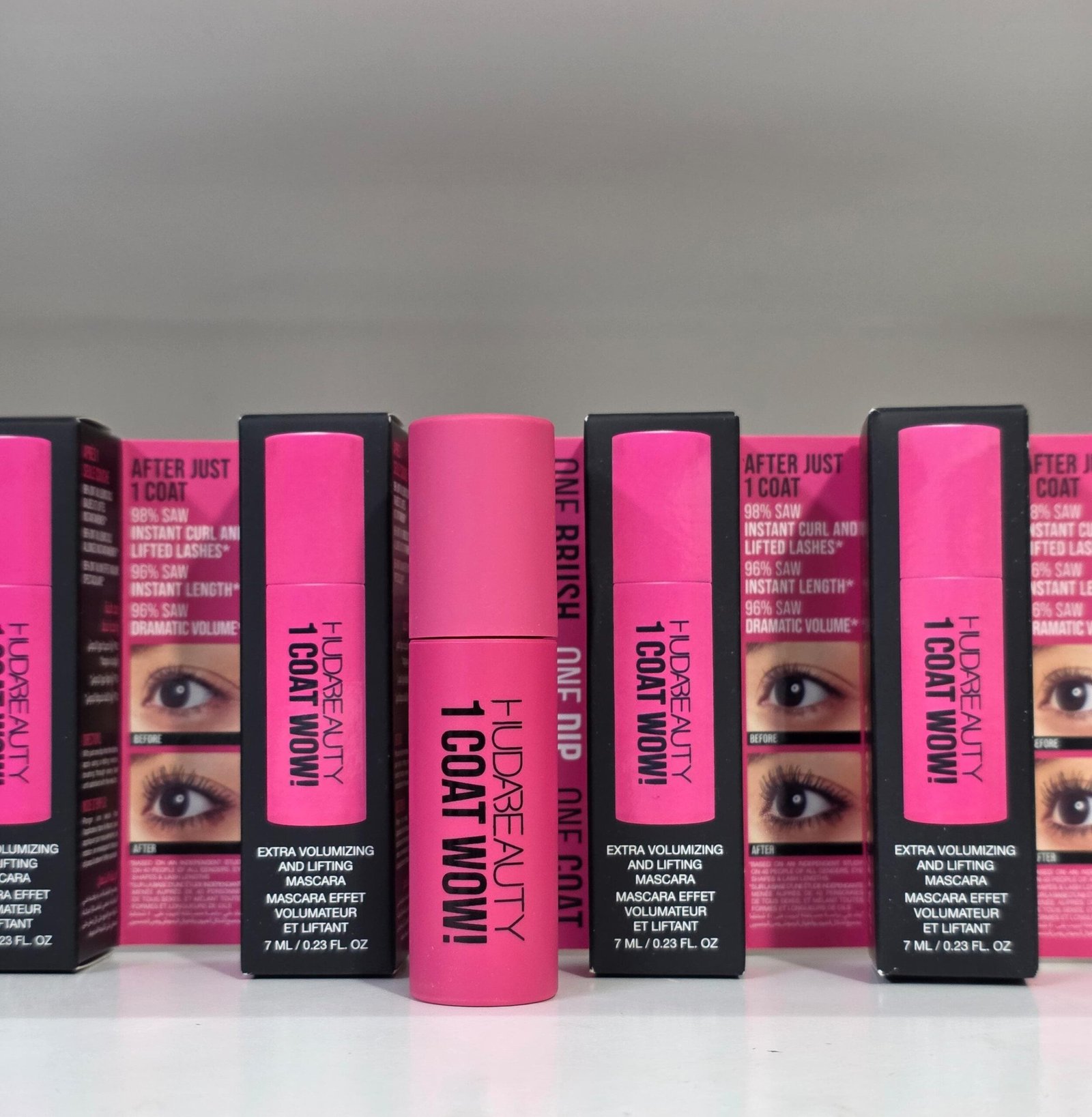 1 Coat means the silicone brush holds enough formula to allow just one dip of mascara to effortlessly coat the lashes.