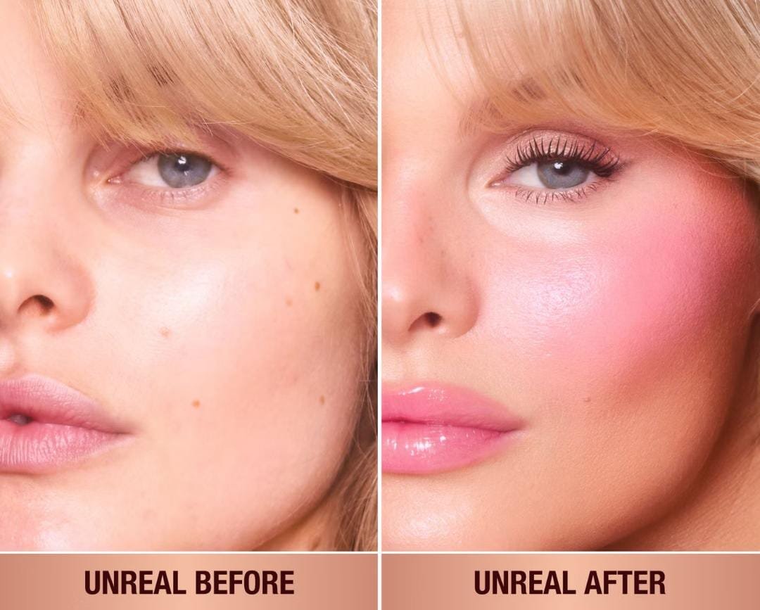 Charlotte Tilbury Unreal Blush Healthy Glow Stick in the shade “Pinky Glow”.