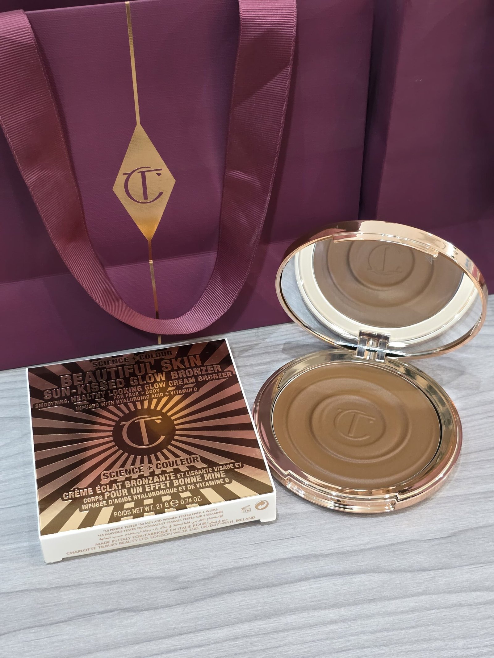 My face + body cream bronzer with hyaluronic acid and sunshine provitamin D3 for a beautiful, healthy looking, beachy bronzed glow!
