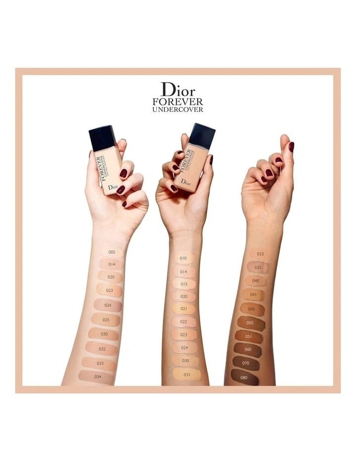 Dior Laboratories, experts in finish and wear, reinvent extreme correction with Diorskin Forever Undercover. This fluid, 24-hour* full coverage foundation combines maximum complexion control with a natural matte finish for a result that is “Kiss-Proof. Touch-Proof. Life-Proof. All Night. All Day.