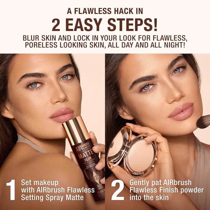 Matte setting spray with 24-hour* oil + shine control for an instant AIRbrush effect!