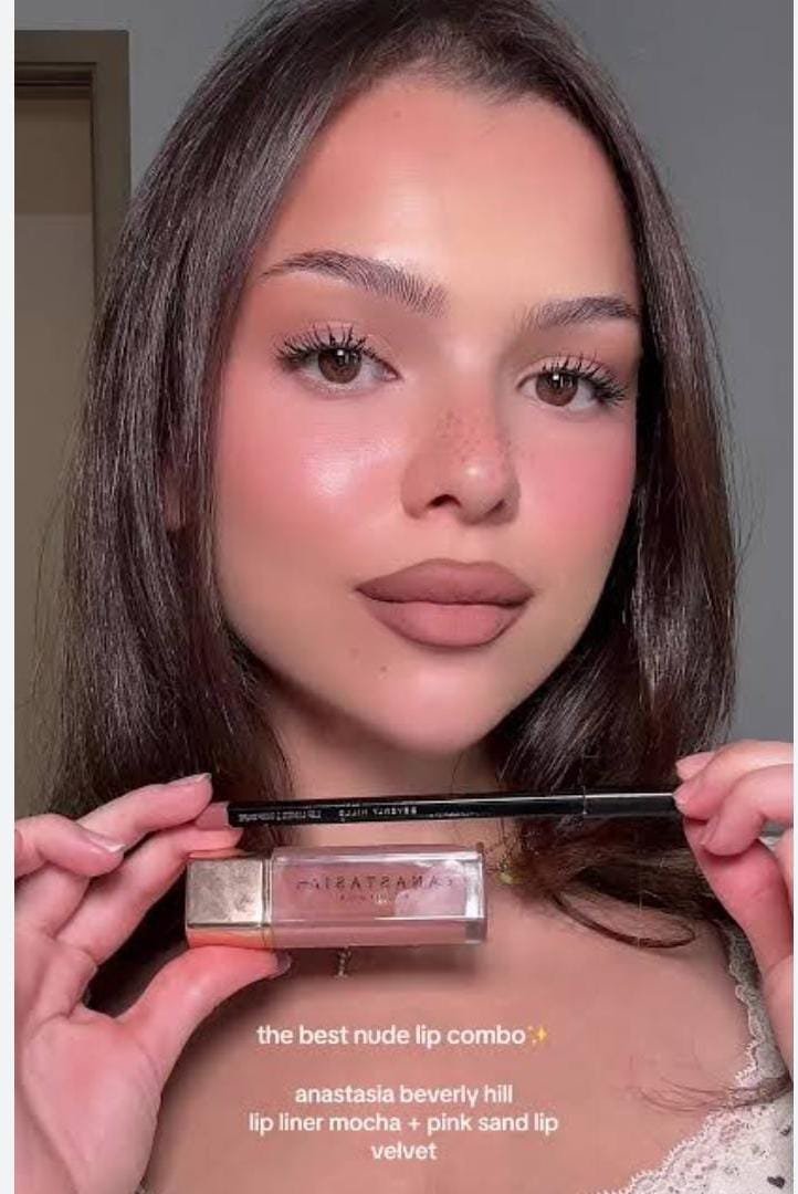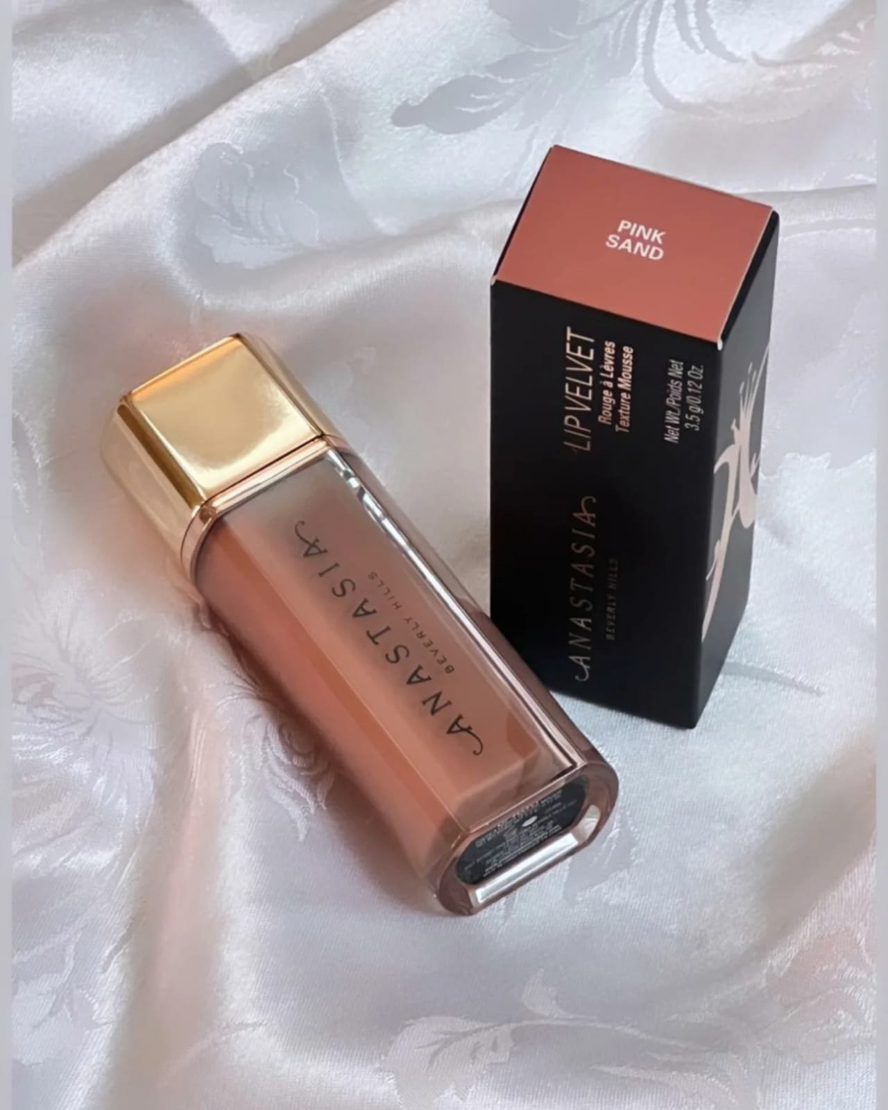 Anastasia Beverly Hills’ Lip Velvet, a velvet-smooth lip mousse with weightless, full pigment, true-matte color, cushioned, comfortable wear and a smoothing lip finish that allows you to line and apply with a multifunctional, teardrop-shaped cushioned wand.